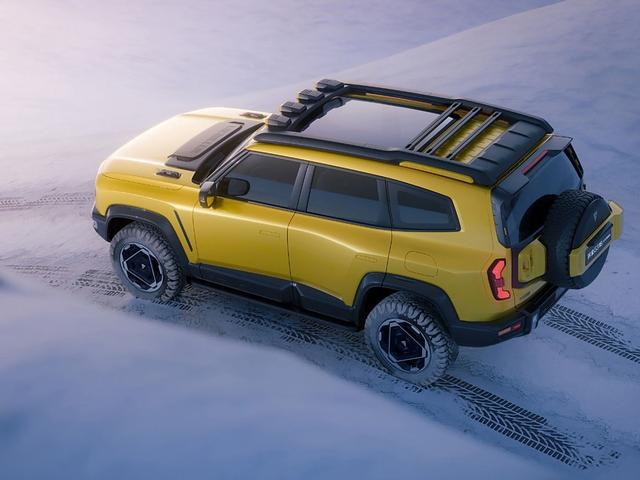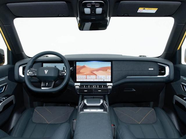 动力方面,搭载由1.5T增程器+后置单电机或前后双电机组成的增程式混动系统,1.5T增程器最大功率110kW,单电机最大功率185kW,双电机总功率316kW,纯电续航190km,支持3C快充,15分钟可以充电30%-80%。配备全时四驱系统与双差速锁,还有ET全地形系统,集成16种驾驶模式、原地掉头、越野蠕行等,可以应对多种复杂路况。